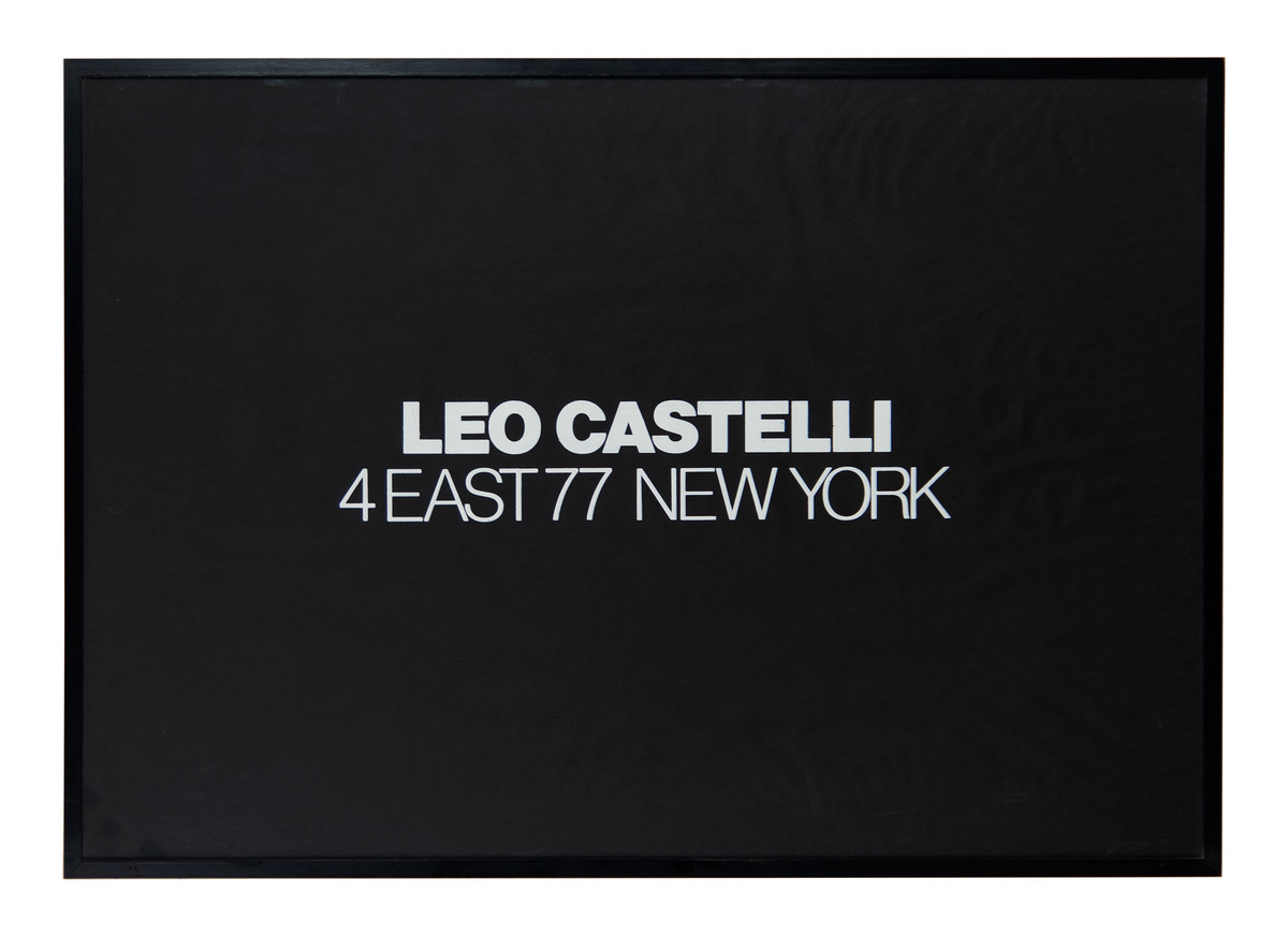 Serigrafia su carta appartenente alla serie Leo Castelli, composta da una quarantina di opere disegnate, intagliate o serigrafate, su cui campeggia la scritta “Leo Castelli / 4 East 77 New York”.