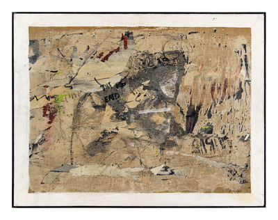 Pittura a tecnica mista su tela con inserti in carta strappata che restituiscono una superficie materica e astratta, ispirata probabilmente dalle opere dell’amico Mimmo Rotella con cui Mauri, nello stesso anno, fonda il gruppo artistico Crack. Al centro della composizione, la scritta «THE END» rimane l’unico segno chiaramente intelligibile che firma queste Note di viaggio.
