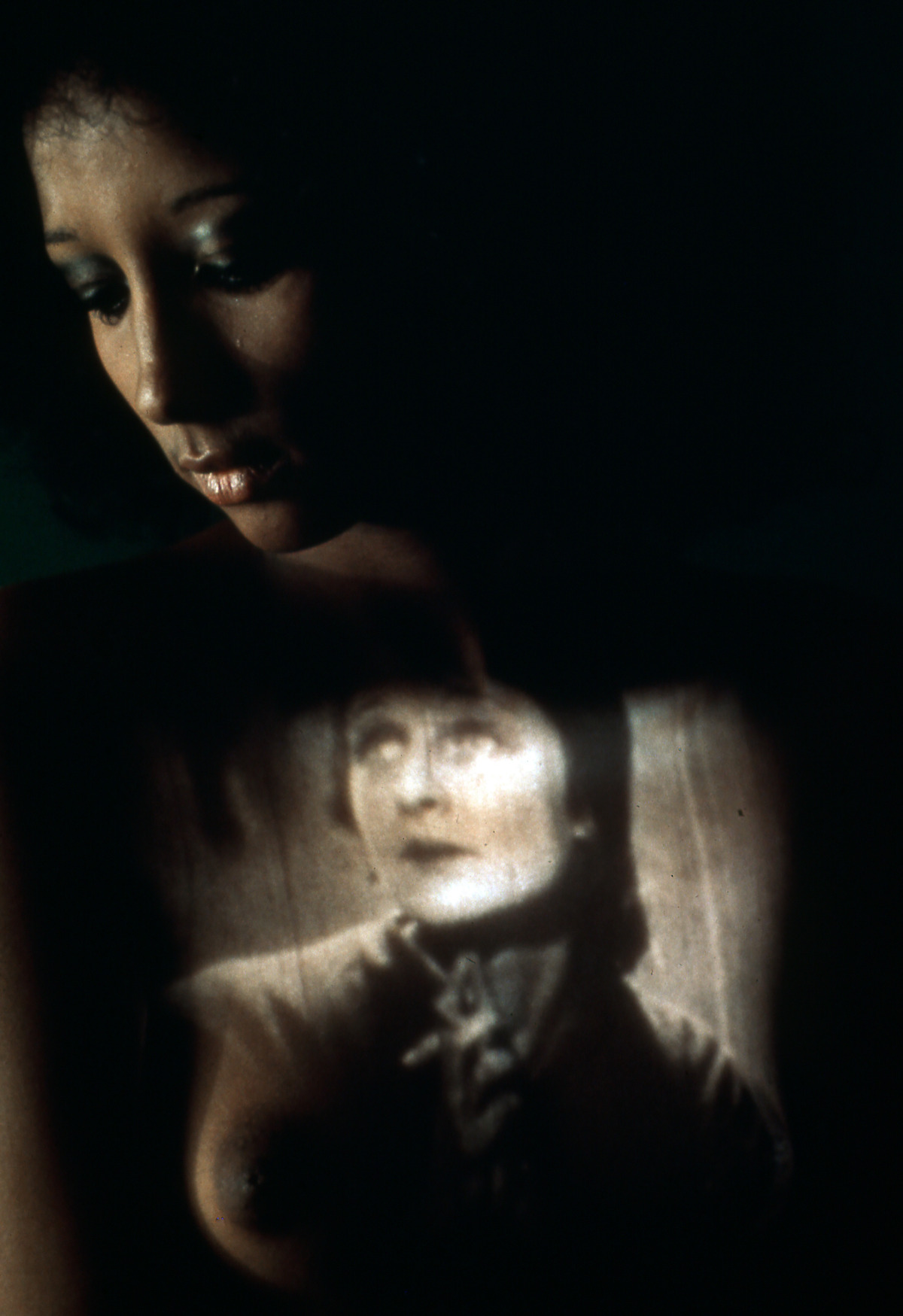 A projection onto a performer consisting of an 8mm-film projector placed in front of a young woman seated on a stool on whose chest the Marc de Gastyne film La merveilleuse vie de Jeanne d’Arc was projected. The nude girl wears a pair of shoes, highlighting her femininity. The silent film tells the story of the life and passion of Joan of Arc, condemned for heresy and burned at the stake at the age of nineteen. The work was first shown at the Galleria Punto Blu in Reggio Calabria on French actress and singer Isabelle de Valvert. In one of his diaries, Mauri wrote: ‘Joan of Arc is projected onto the Negro [sic] singer Isabelle de Valvert, who here is not a symbol of any race so much as a young woman fighting for truth against power and the men who hold it. The result is a parable that fearfully reflects on this battle’s outcome.’ The work was exhibited that same year at the Teatro in Trastevere in Rome along with other projections on people and objects and subsequently, using different performers, on many other occasions. The version on Isabelle de Valvert was photographically recorded in a studio by Elisabetta Catalano. One of these shots, of the woman from the back, was used in the 1977 work Seduta su l’ombra (cat. 3390).