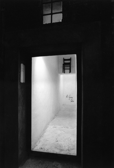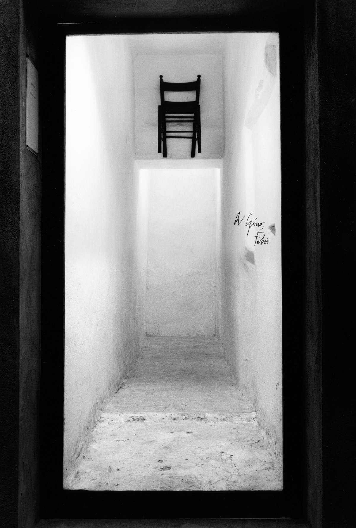 Edicola Notte was a seven-by-one-metre exhibition space in the heart of Rome’s Trastevere district curated by artist H.H. Lim. Viewed through a French window, it was otherwise inaccessible to the public. Edicola Notte turned on its lights every night when other museums and galleries closed down, offering a kind of nighttime ‘newsstand’ of the contemporary, like one of the many aediculas (literally ‘little temples’) that still populate Rome’s alleyways. Invited to create a work for the gallery, Mauri decided to dedicate his ‘sacred representation’ to his artist friend Gino De Dominicis, who had died a few months earlier, suspending a chair on the rear wall, a citation of his work L’immortale, l’invisibile e il luogo (The Immortal, the Invisible and the Place) (1989). A simple, unequivocal handwritten dedication on the glass door read: ‘A Gino, Fabio’. ‘Gino’s passing is akin to an unseen yet brilliant exhibition we hear about. A plug rather than mourning. Almost too formalised, and completely unexpected. An unattainable exhibition. Days before, at eight o’clock (I was going out to get X-rays at a testing laboratory), in the deserted street I met Gino, neat, elegant, in black. Given the unusual hour for both of us, I greeted him with lively gestures. Gino did not respond. He pulled over, held out a hand to me and said, ‘Hello, Fabio Mauri’, sounding out the words. I was displeased. That meeting was unlike any other, where we hugged, laughed, or he urged me to arrange some evening “gruel”, or suggested that he, I, and (always) Prini should put works up for sale in his house or mine at a billion each. I carried on without looking back. Then, a few days later, the far-fetched news of his death, and dismay. Comprehension slowly dawned. Perhaps Gino was speaking to me from his elevated chair. From where he was saying goodbye, to me at least, with objectivity […] A phrase he once said to me at the dal Bolognese restaurant comes back, returning to mind, “I work better far away”. Maybe it’s true, dirty dog. He works better than well. But that gives me no comfort, just pain. I need to understand.’1