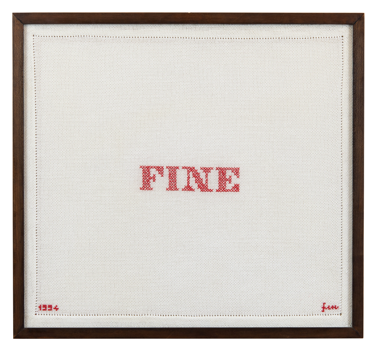 INSCRIPTIONS: Signature and date embroidered on the recto, lower left: ‘87’, lower right: ‘m ’