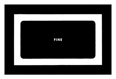 Opera su carta caratterizzata da una fascia nera dipinta lungo i bordi del foglio che inquadra un rettangolo-schermo dagli angoli arrotondati con al centro la parola «FINE», leitmotiv dell’opera di Mauri e indicazione di una proiezione già avvenuta. Dell’opera esiste una seconda versione del tutto simile ma di formato più grande (inv. 881).