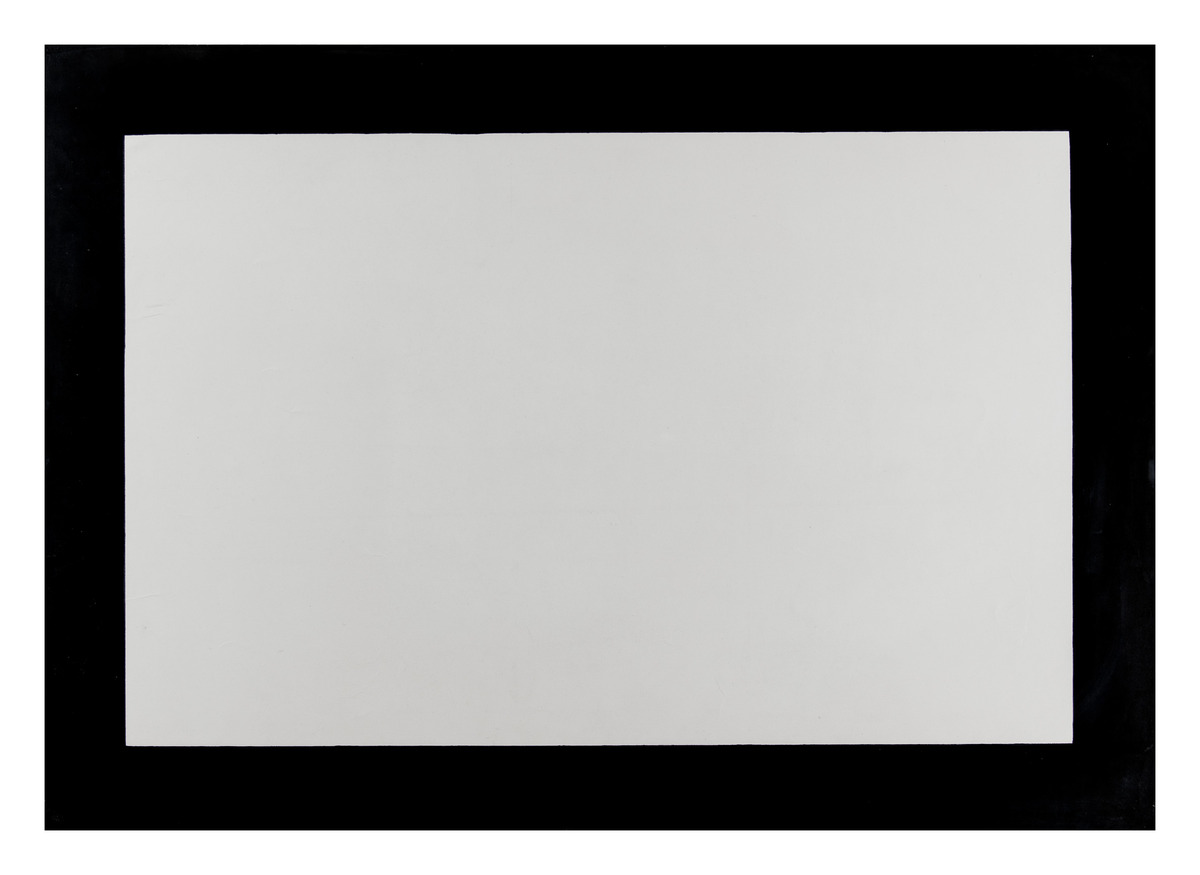 Opera appartenente alla primissima serie di schermi composti da un foglio di carta bianco di formato standard (70 × 100 cm) con un bordo nero di circa 8 cm dipinto a tempera lungo i quattro lati. Il titolo introduce, per la prima volta nell’opera di Mauri, il concetto di schermo trasformando la carta in una superficie vuota potenzialmente in grado di contenere qualsiasi disegno o proiezione. L’indicazione “Verticale-Orizzontale”, inoltre, suggerisce che il quadro può essere appeso nelle due direzioni, affrancando l’opera dalla mera rappresentazione dello schermo cinematografico.