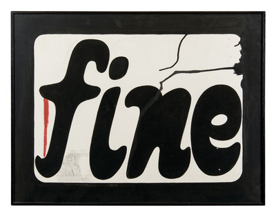 Schermo-disegno caratterizzato da una cornice nera dipinta lungo i bordi del foglio che definisce un “campo di proiezione” entro il quale, tra alcuni segni a tempera e inchiostro e una piccola immagine trasferita a decalcomania, domina la scritta «fine», leitmotiv dell’opera di Mauri e indicazione di una proiezione già avvenuta.