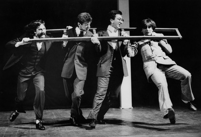 Nacque così la “Gran Serata”, collage di teatro sintetico, poesia parolibera e pentagrammata, danza e musica rumorista, fra rigorosa ricostruzione filologica e libera interpretazione. Replicato per sei volte durante tre diversi tour (1980, 1982 e 1986) in varie sedi e città, lo spettacolo si svolgeva in un teatro “all’italiana” «contro cui rimbalzava con effetto doppio di novità il testo futurista, la parodia del teatro classico o da camera, alto e basso»2.