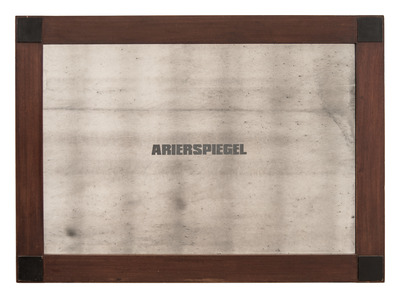 «Arierspiegel», specchio ariano. L’opera, contraltare dell’armadietto della performance Ebrea del 1971 (inv. 3476), è uno degli “oggetti ariani” esposti nella mostra Arierwiege alla Galleria Sauro Bocchi di Roma (cfr. inv. 1023 e 593).