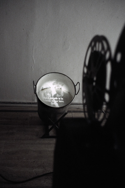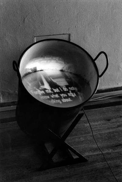 Proiettate sul latte, le immagini si trasformano in materia organica, viva: «L’opera è fatta in modo che la gente passando, strusciando, dà al latte una sua ondulazione che sembra naturale o prodotta da qualche ventilatore nascosto e invece è la gente che la muove e imprime dolcemente una sorta di allegoria di un’unità biologica ideale tra buoni umani»3.